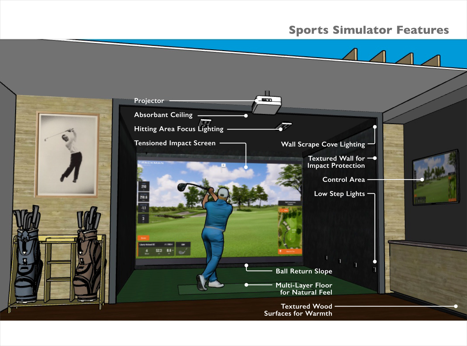 Contact us today to guide you through the design journey and create the ultimate home sports simulator experience.