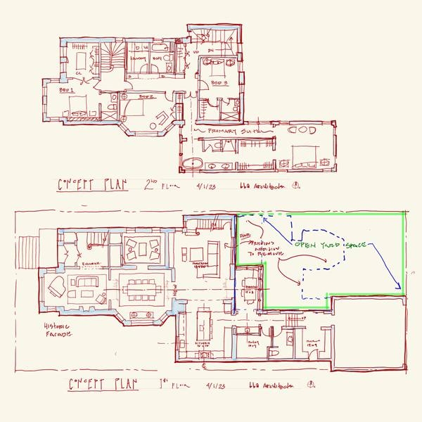 To preserve the architectural integrity of this historic Chicago greystone, the existing facade and significant original interior features will be restored. Blending the home’s rich history with modern functionality, the grand front rooms are returned to former glory, with modern systems for enhanced comfort, while previous inharmonious additions are replaced to create seamless floor plans for contemporary living.