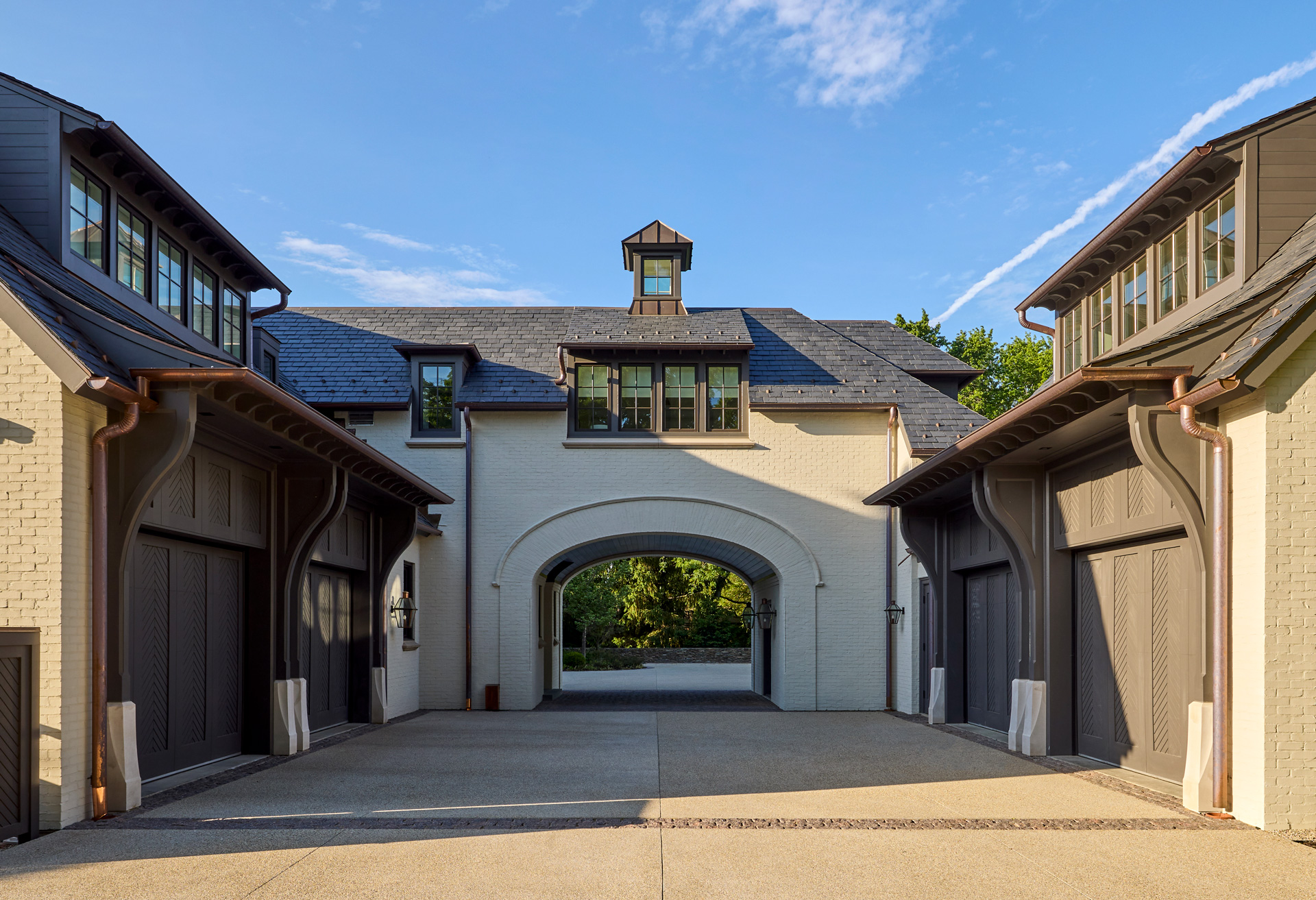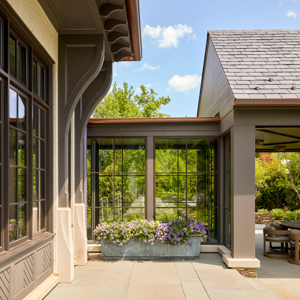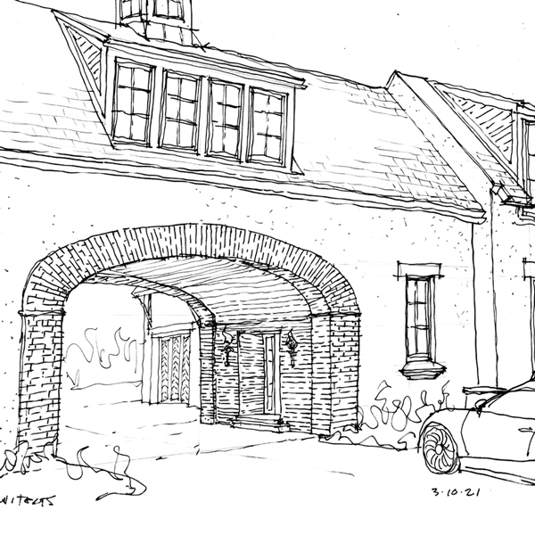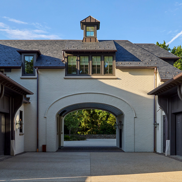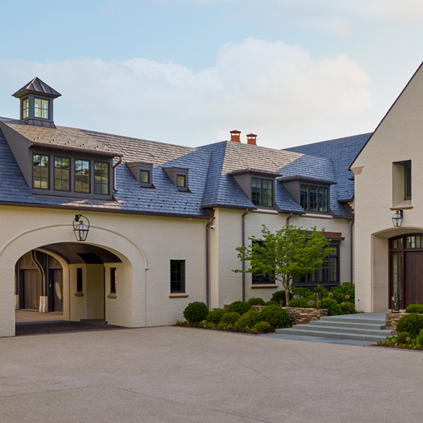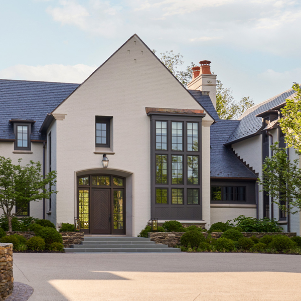 This stately English-style North Shore estate is currently under construction. The home will feature a brick, stucco, and stone exterior with an abundance of windows and a porte-cochere. Learn more about the deconstruction process we used to build this home.