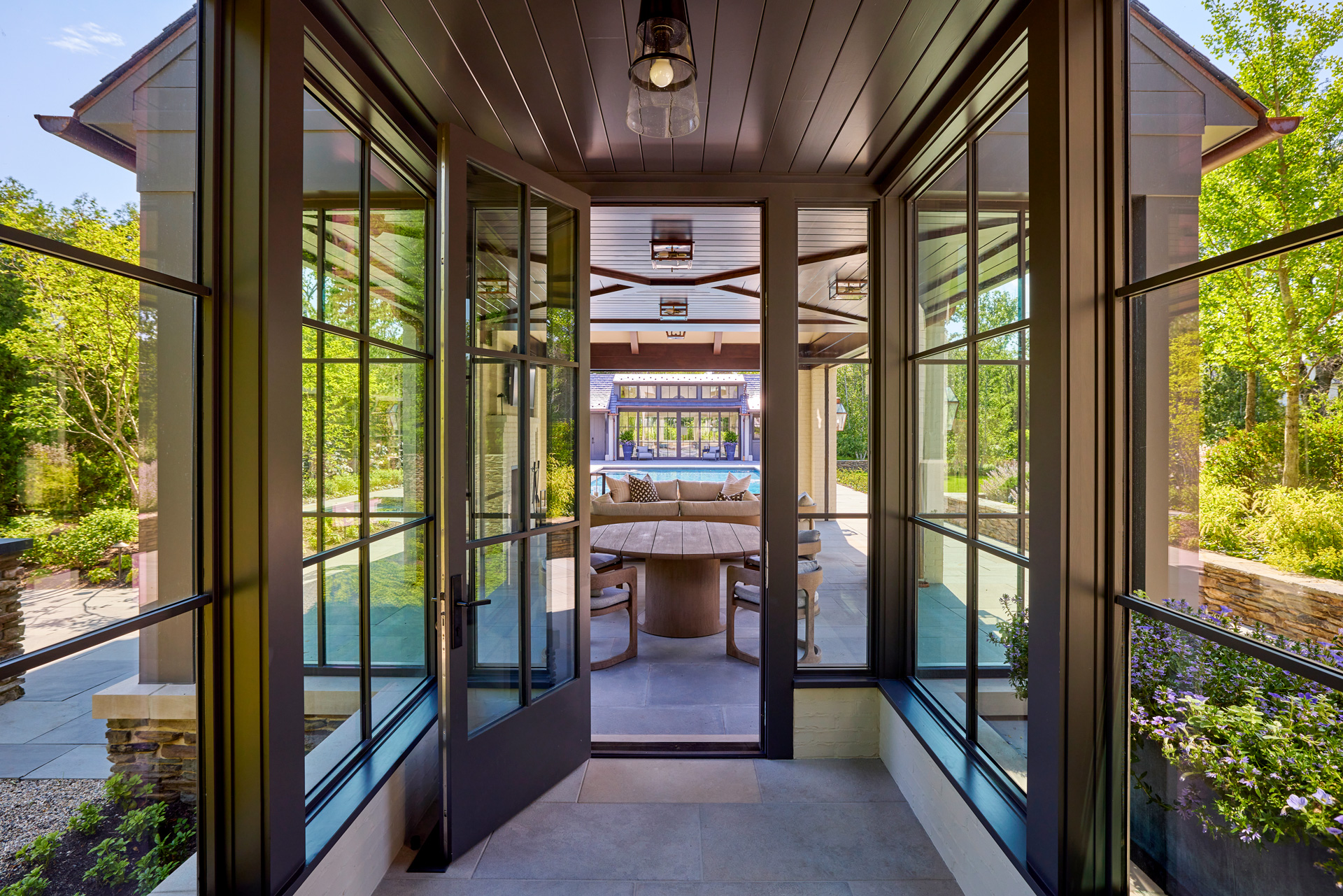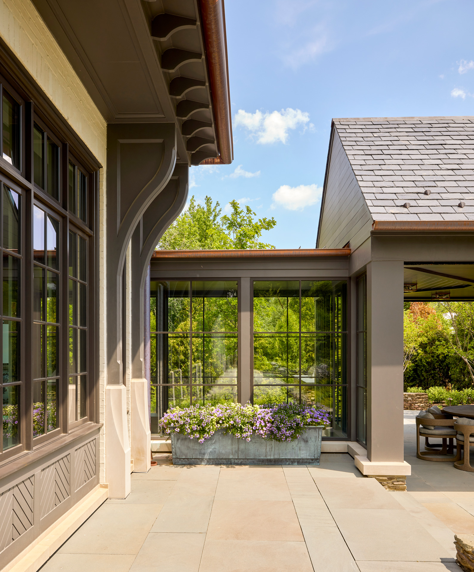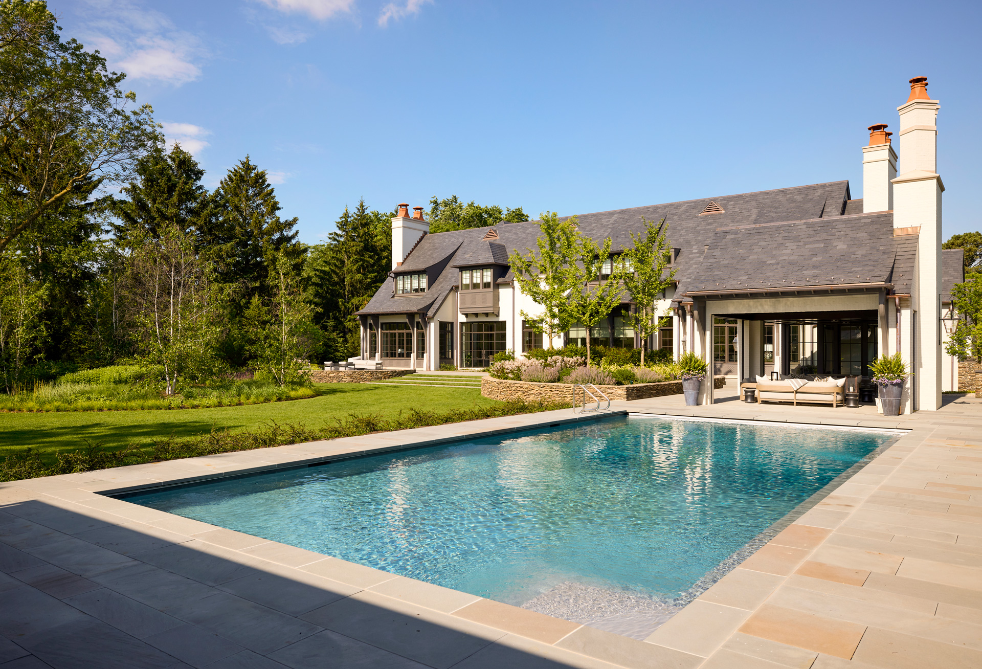 This stately English-style North Shore estate is currently under construction. The home will feature a brick, stucco, and stone exterior with an abundance of windows and a porte-cochere. Learn more about the deconstruction process we used to build this home.