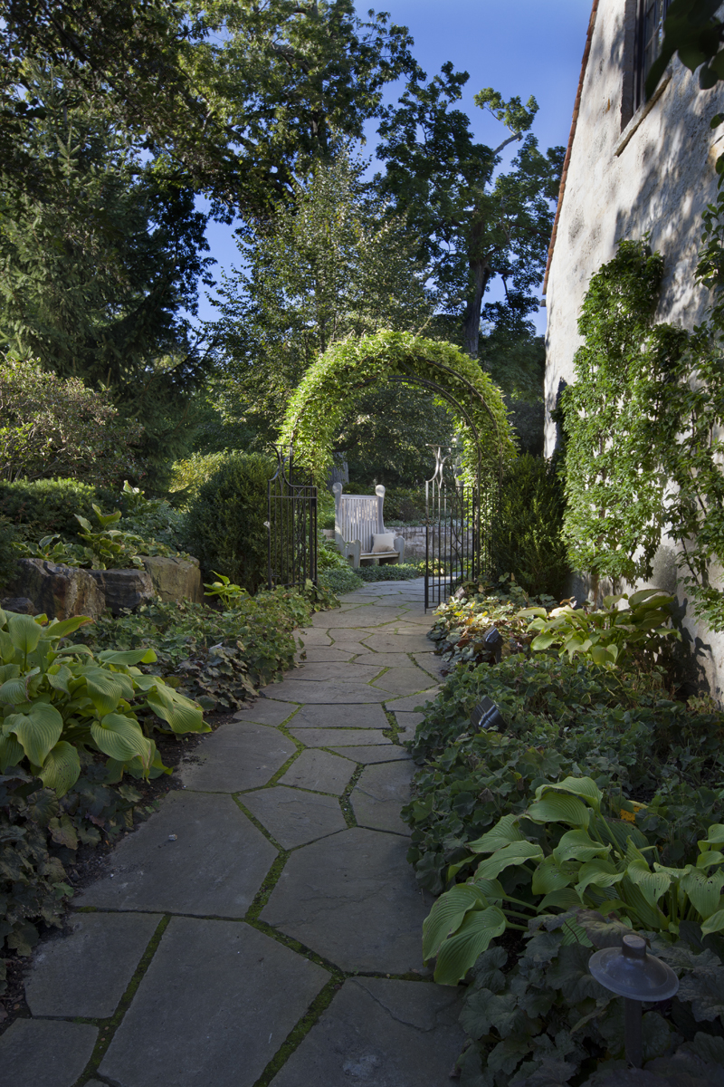 An opportunity arose for our client to purchase the adjacent property to their existing home, a 1908 Robert E. Seyfarth Cotswold manor, that we renovated in 2002 and 2009. This charming gatehouse is a perfect companion building to the main house, Cotswold Manor. The building is used for additional garage storage, as well as a 2 bedroom guest house. A unique feature of the garage is the two-car lifts, which allow a two-car garage to become a four-car garage. Details and materials of the original were replicated so the house has the same timeless character of the original.