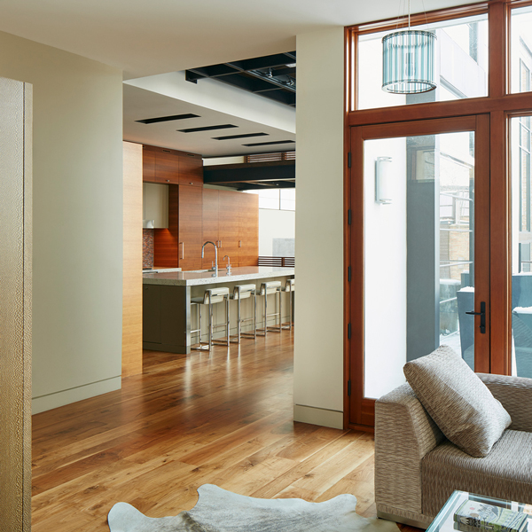The homeowners desired a modern yet warm aesthetic. The open plan and floor-to-ceiling windows looking onto the open yard were paramount to achieving the goal of a family home that was ready to entertain. Natural materials, such as salvaged timbers, Douglas fir stair treads, and painted steel structural elements at the stair and bridge add tone and texture to an otherwise restrained palette. The project incorporated many elements of sustainability, including natural ventilation systems, attention to natural lighting, and efficient use of space.