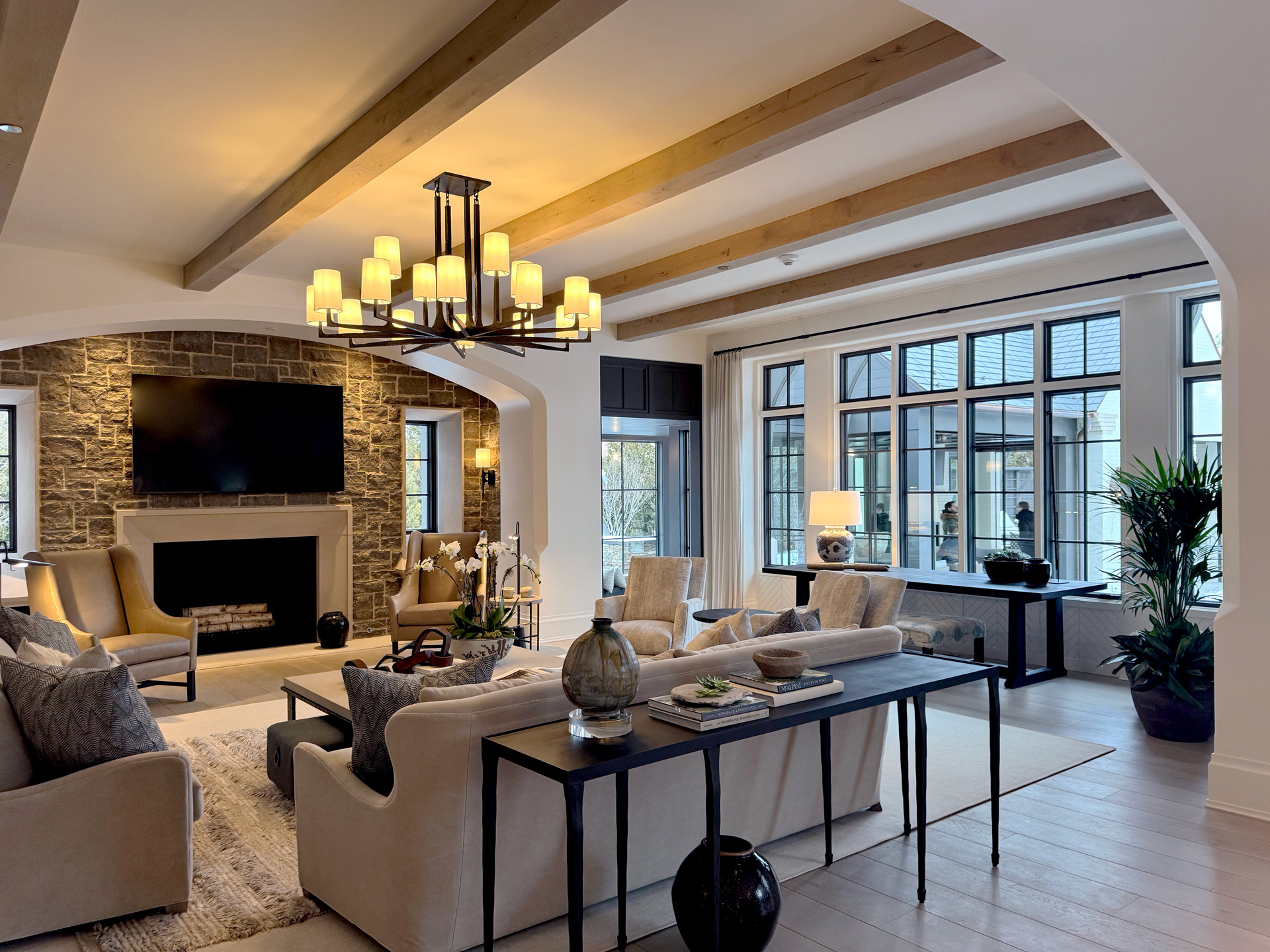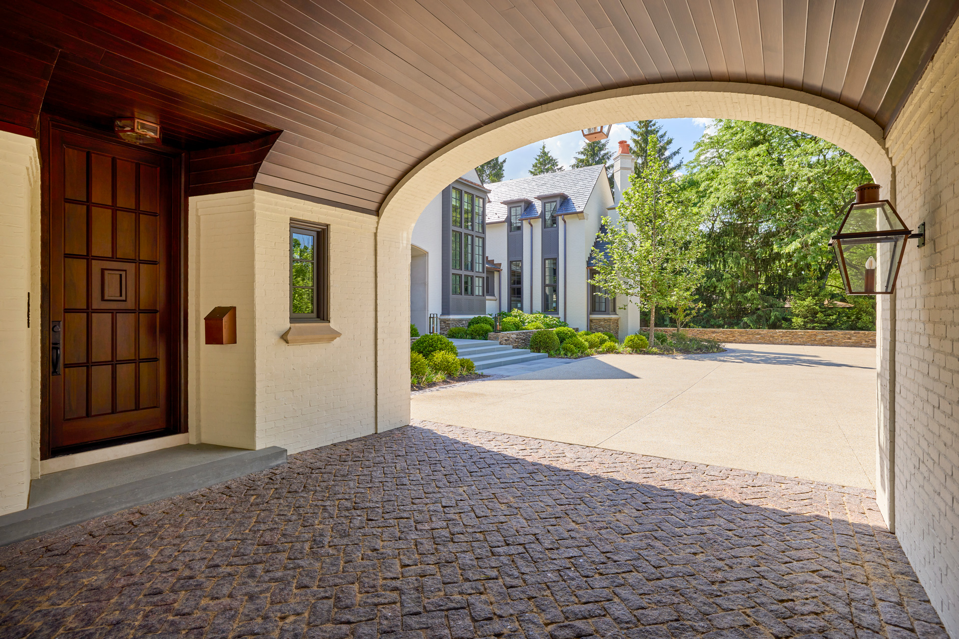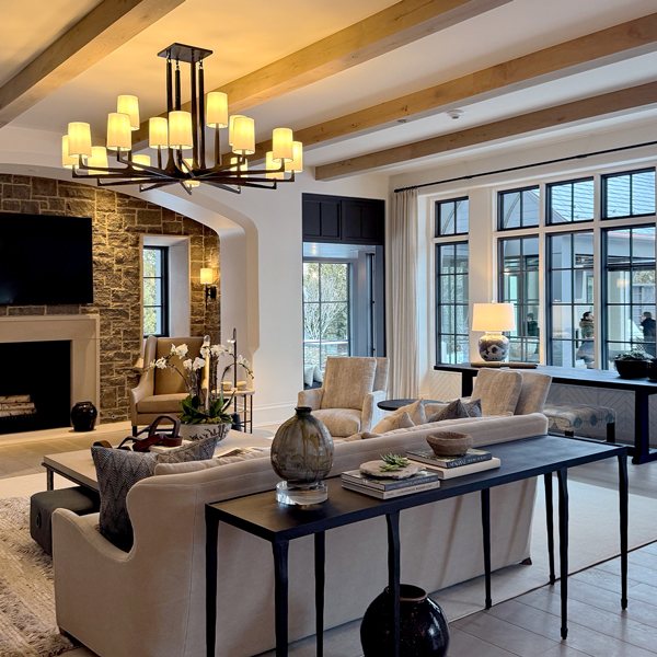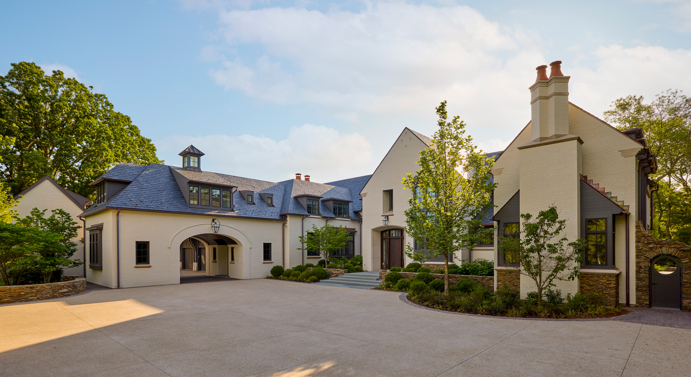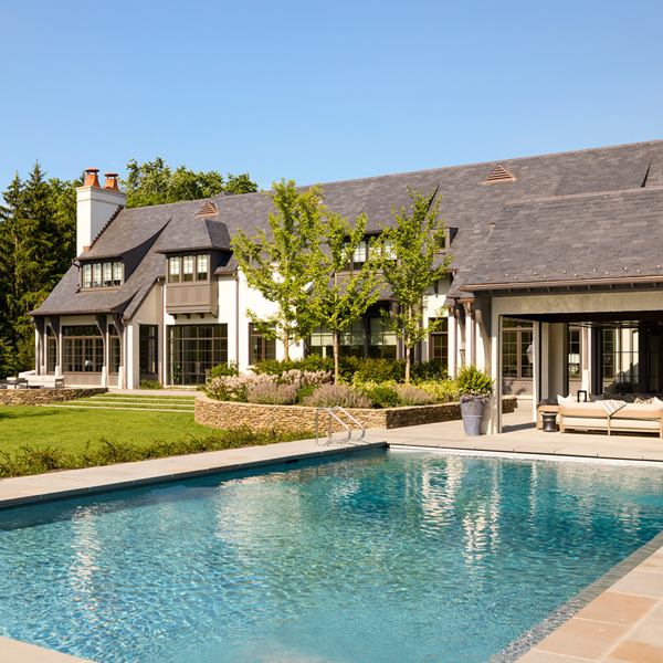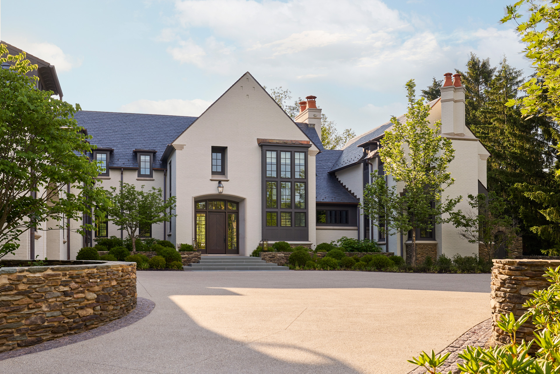 This stately English-style North Shore estate is currently under construction. The home will feature a brick, stucco, and stone exterior with an abundance of windows and a porte-cochere. Learn more about the deconstruction process we used to build this home.