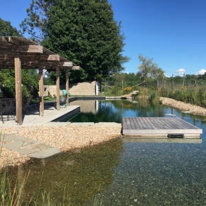Natural Swimming Pool and swim area which filters water via waterborne plantings.